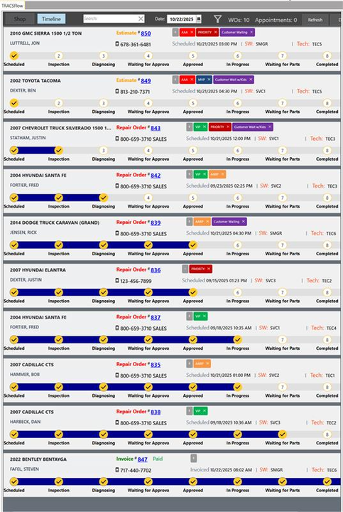 Your shop is a complex system of moving parts. Service writers, techs, managers, and more all working together towards a goal. Just like an engine, proper timing is key for maximum performance. That’s why TRACS has integrated scheduling to keep you moving efficiently.